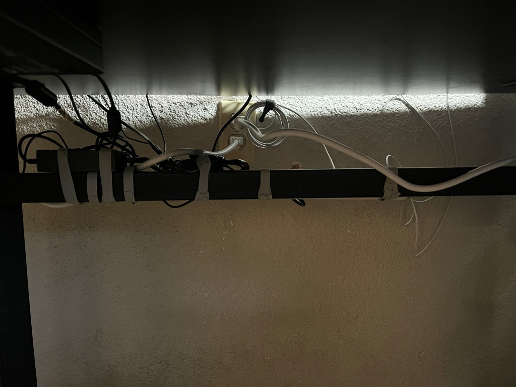 I am bragging about my almost good cable management. As well as being sad about wall outlets.