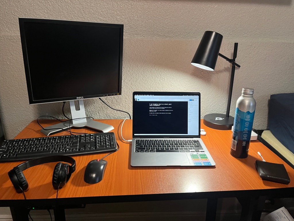 I have returned to my college and have become enamored with making my terrible little desk clean and nice if possible.